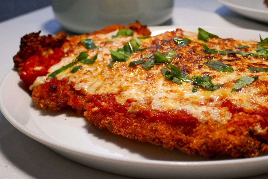 A massive, thin-and-crispy chicken cutlet comes draped with bright tomato sauce and melty, bubbling mozzarella cheese. On the side is a bowl of rigatoni with spicy vodka sauce. It’s almost laughably large, which can sometimes be indicative of a gimmick, but there’s no loss of quality here. The chicken cutlet is crunchy and juicy. The sauce is flavorful. The cheese is… the cheese—it’s doing exactly what it’s supposed to do.